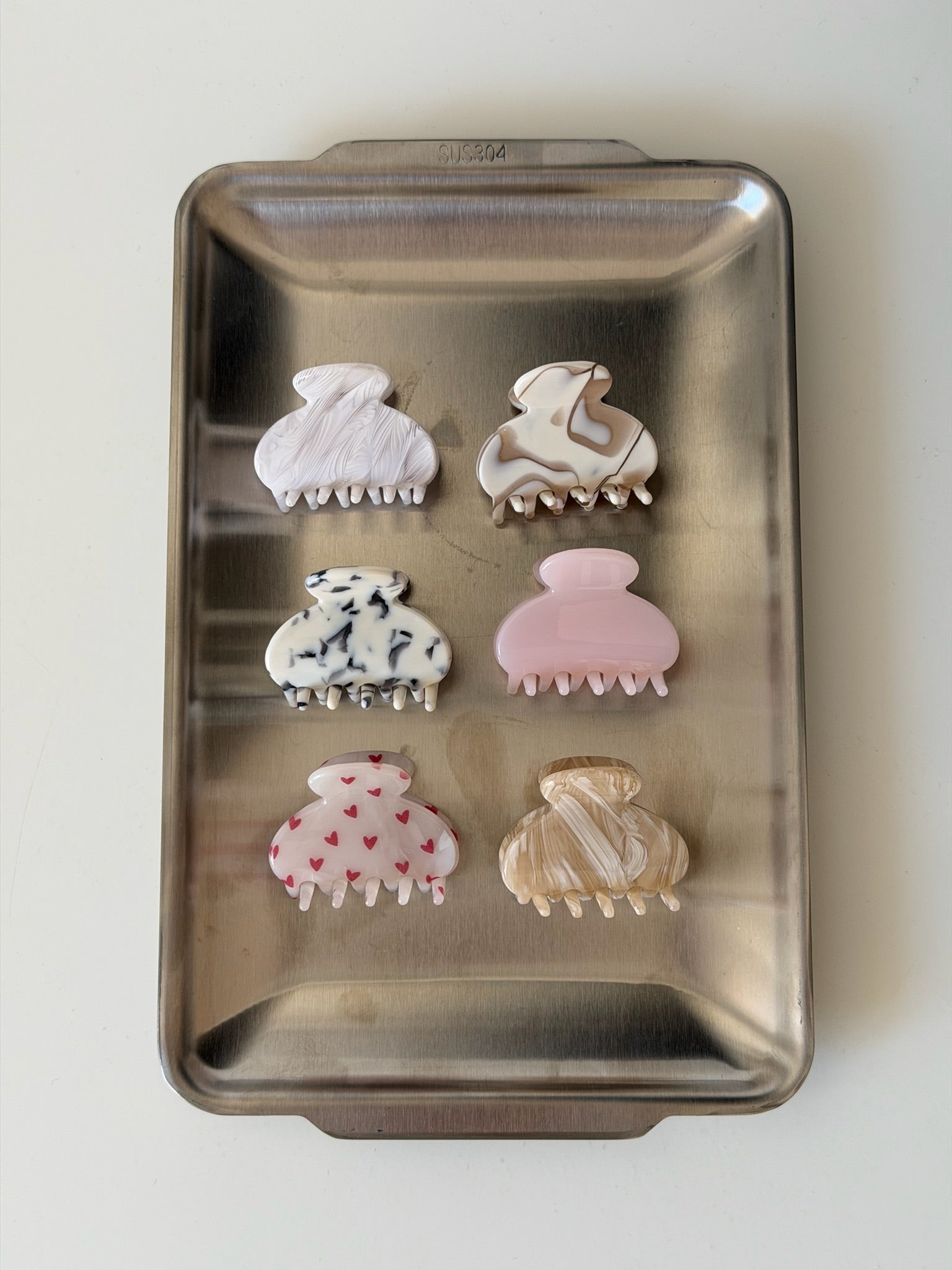 Da das Acetat handgegossen wird, sind alle Clips individuell und einzigartig. Es kann vorkommen, dass Farbe & Muster minimal von den Fotos abweichen.