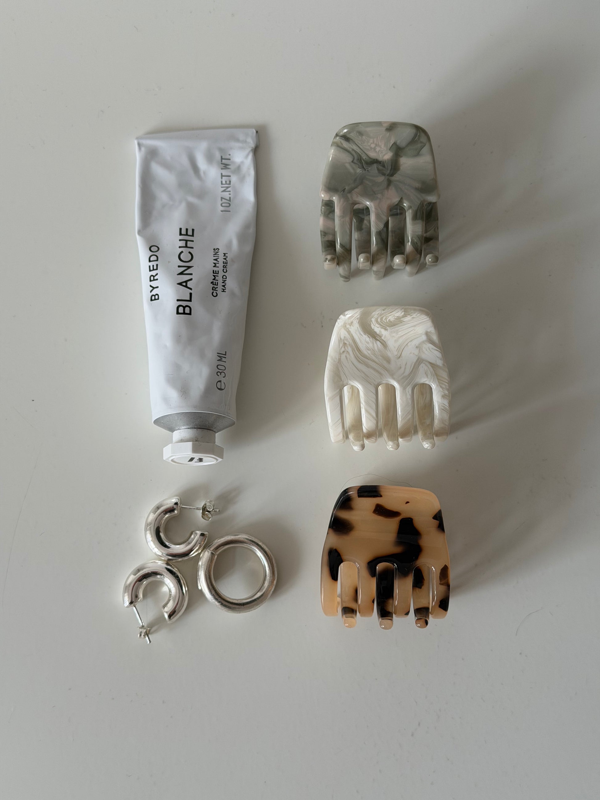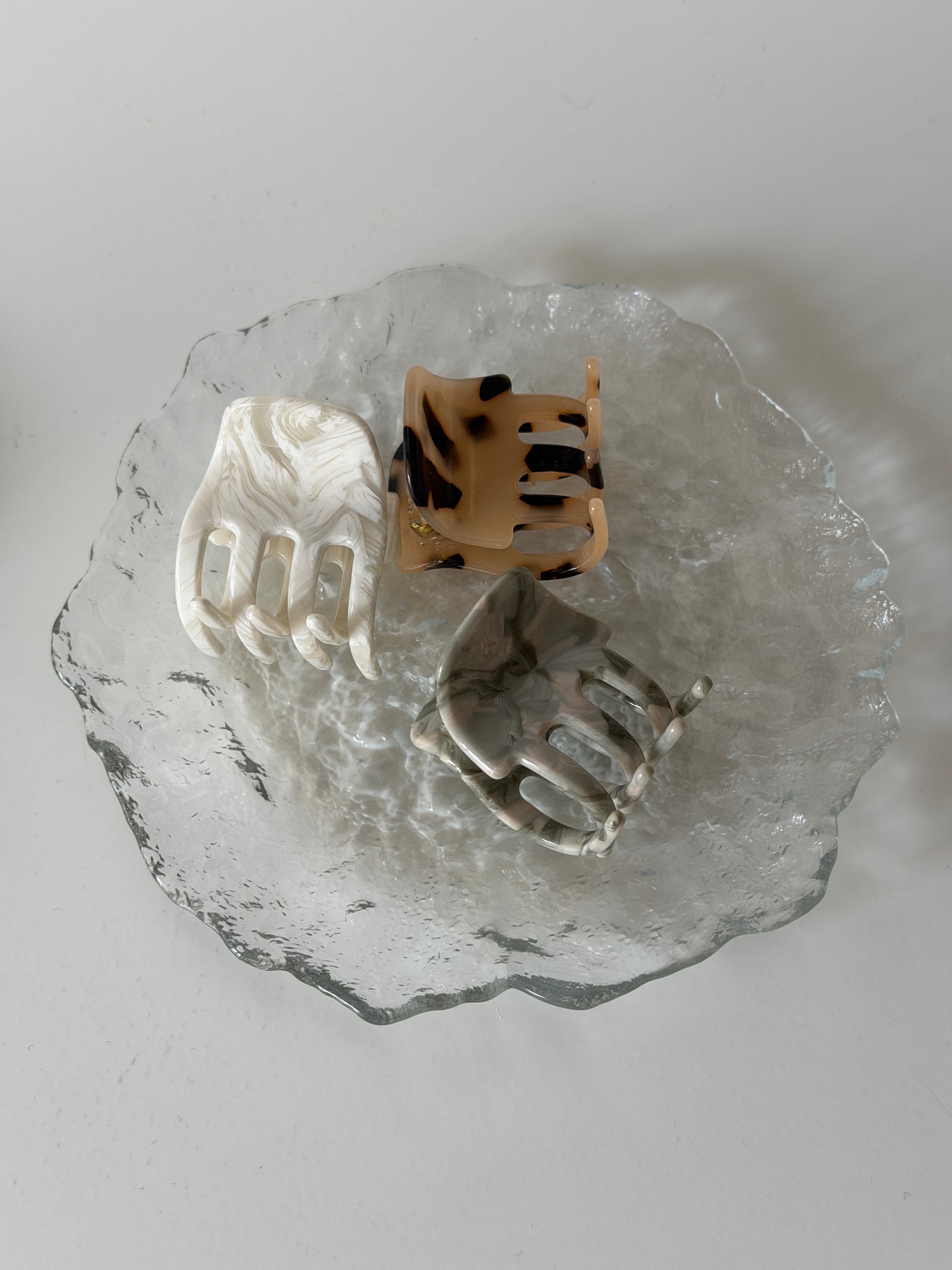 Da das Acetat handgegossen wird, sind alle Clips individuell und einzigartig. Es kann vorkommen, dass Farbe & Muster minimal von den Fotos abweichen.