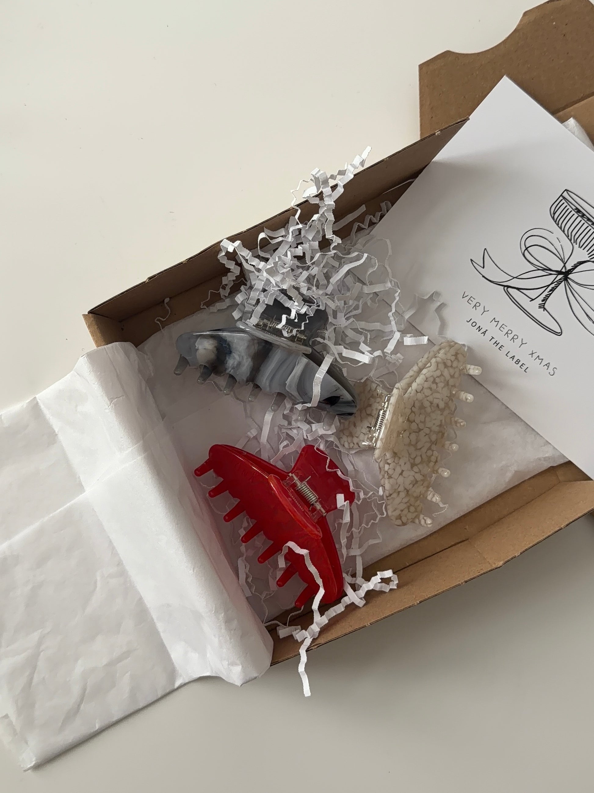 Da das Acetat handgegossen wird, sind alle Clips individuell und einzigartig. Es kann vorkommen, dass Farbe & Muster minimal von den Fotos abweichen.