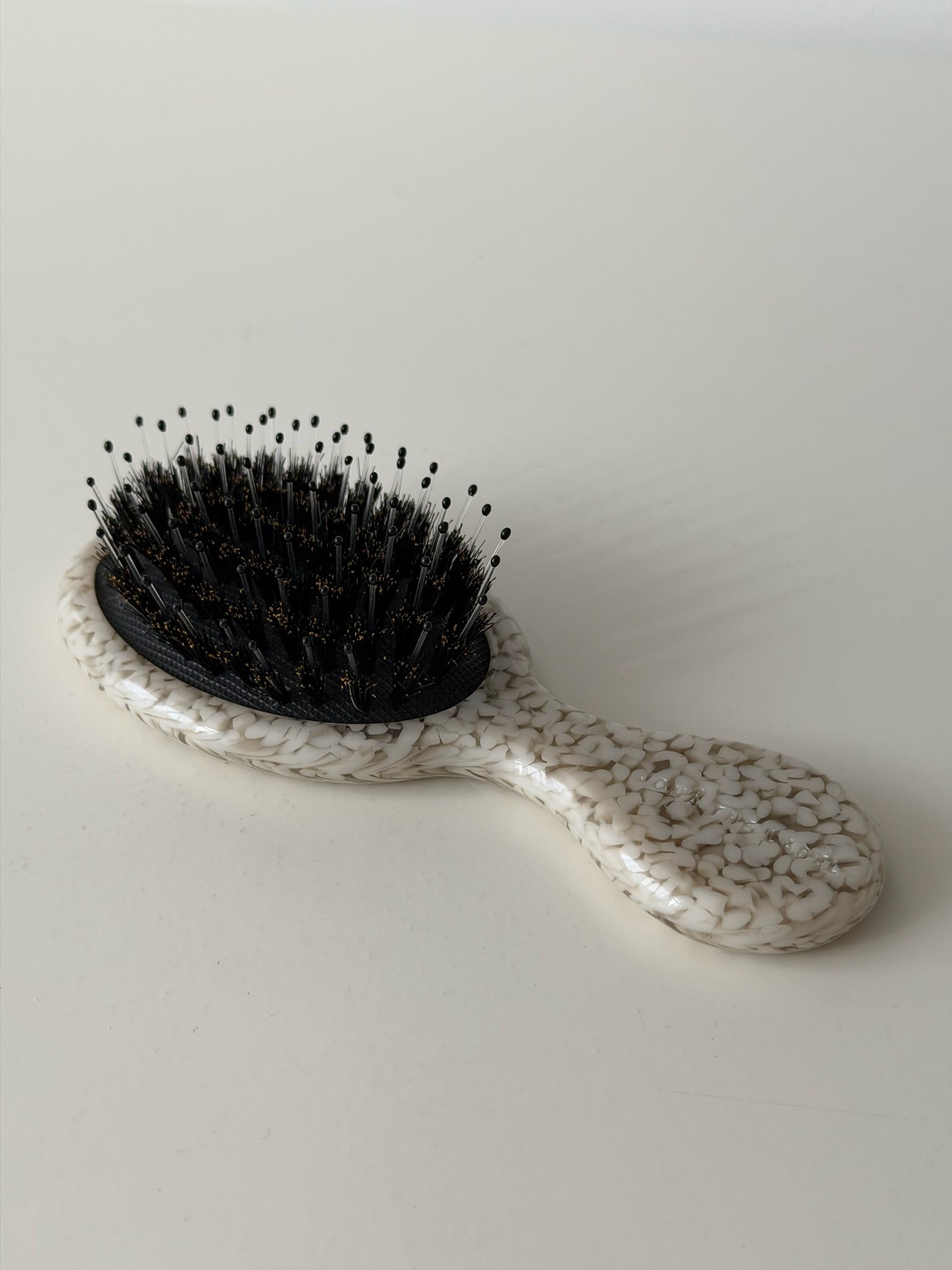 Die Brush besteht aus dem umweltfreundlichen Cellulose Acetat und einer Kombination aus Wildschwein- und Nylonborsten.